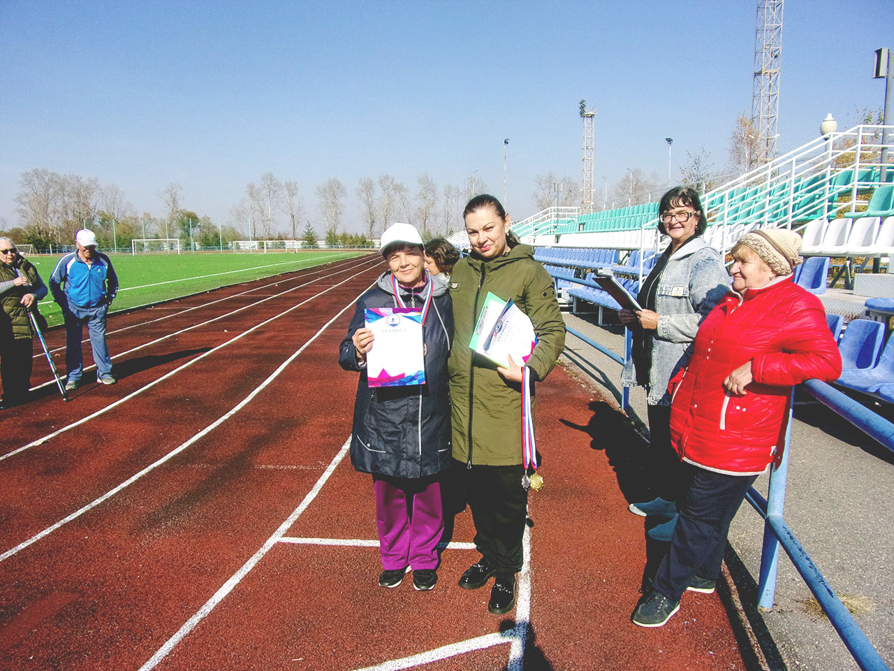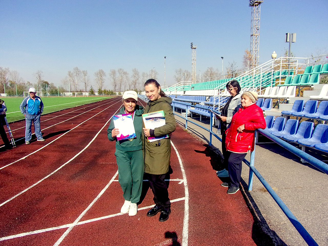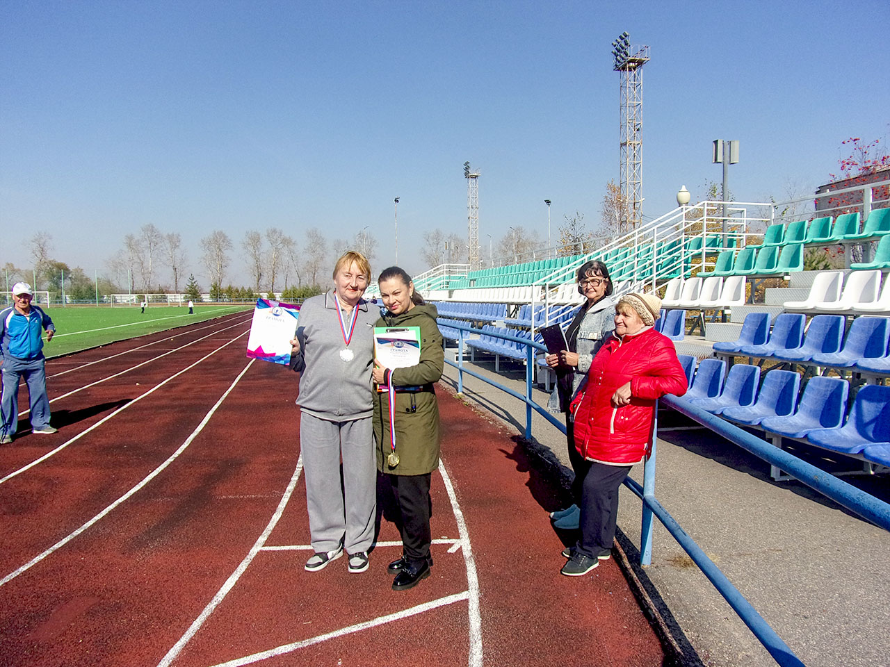 2 октября 2024г. на стадионе «Амурсельмаш» состоялась Спартакиада среди пенсионеров Белогорской Городской Общественной Организации «Союз Пенсионеров» под девизом «Нам года не беда, коль душа молода». Спартакиада приурочена ко Дню добра и уважения. В честь этого замечательного праздника специалисты Управления ФК и С Славик Светлана Владимировна и Басистая Светлана Игоревна пришли поздравить спортсменов и предложили провести командную эстафету и акцию по скандинавской ходьбе. Главный тренер организации Татарчевская Нелли Фёдоровна провела соревнования по толканию ядра и тройному (прыжку) шагу. В соревнованиях по скандинавской ходьбе участникам предстояло преодолеть дистанцию 1000 метров со скандинавскими палками с использованием техники классической северной ходьбы. По итогу соревнований 3 место заняла Лидия Александровна Мосягина, серебряным призером стала Тамара Викторовна Воробьева, чемпион — Ольга Алексеевна Гостевская. Победители и призеры награждены медалями и грамотами. В командной эстафете участники выполняли задания на скорость (какая команда быстрее выполнит заданное упражнение). Любители метания ядра соревновались на дальность бросания ядра. Главными победителями соревнований стали сами участники — их энергия, позитивный настрой и стремление к активной жизни.