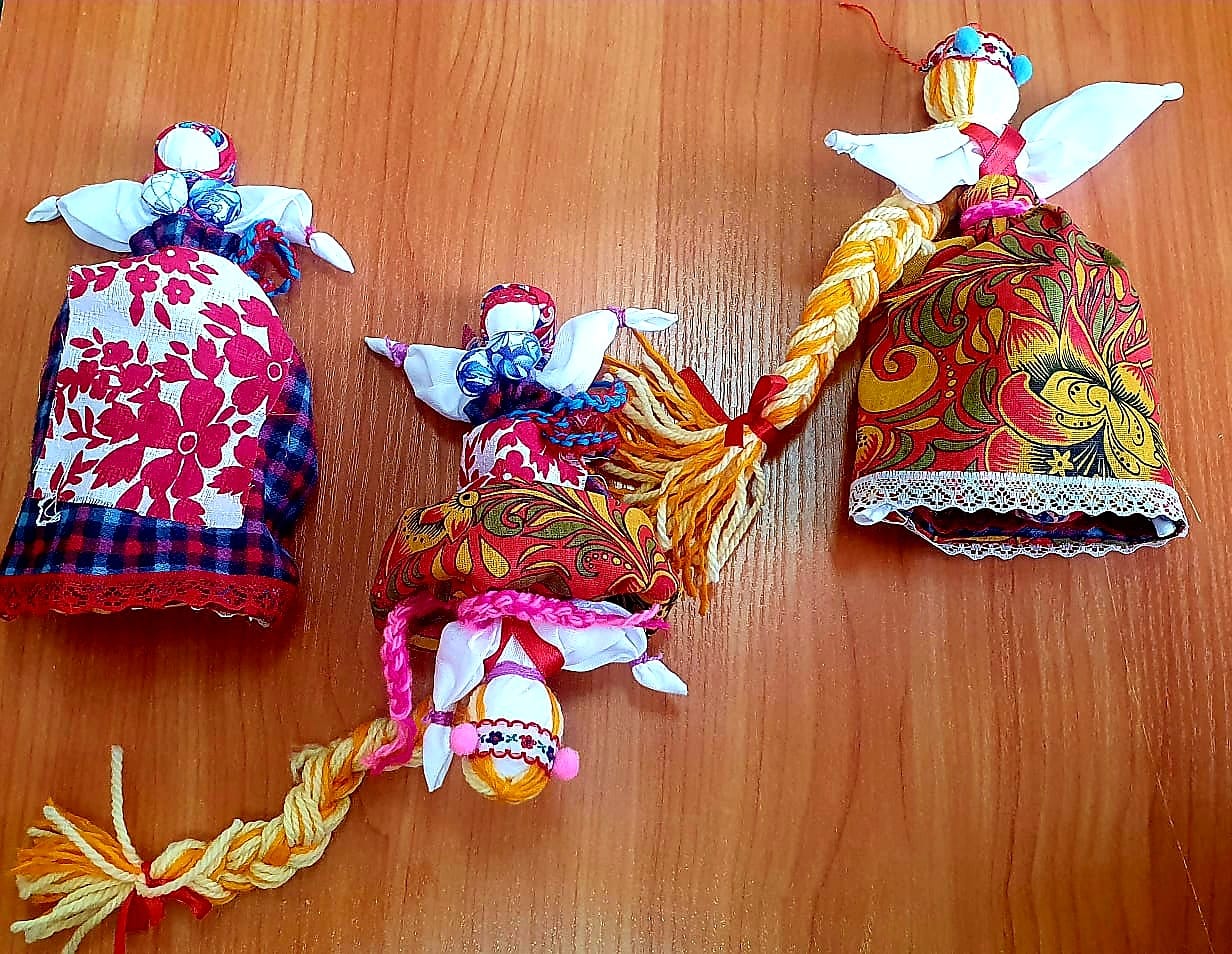 О том, что на Руси тряпичные куклы выполняли роль оберега, защищали людей от зла и нечисти, а в дом приносили удачу, благополучие, радость и любовь, рассказала сотрудник Дома культуры Татьяна Паруликова. Среди многообразия народных кукол есть одна особенная: кукла-перевёртыш «Девка-Баба».