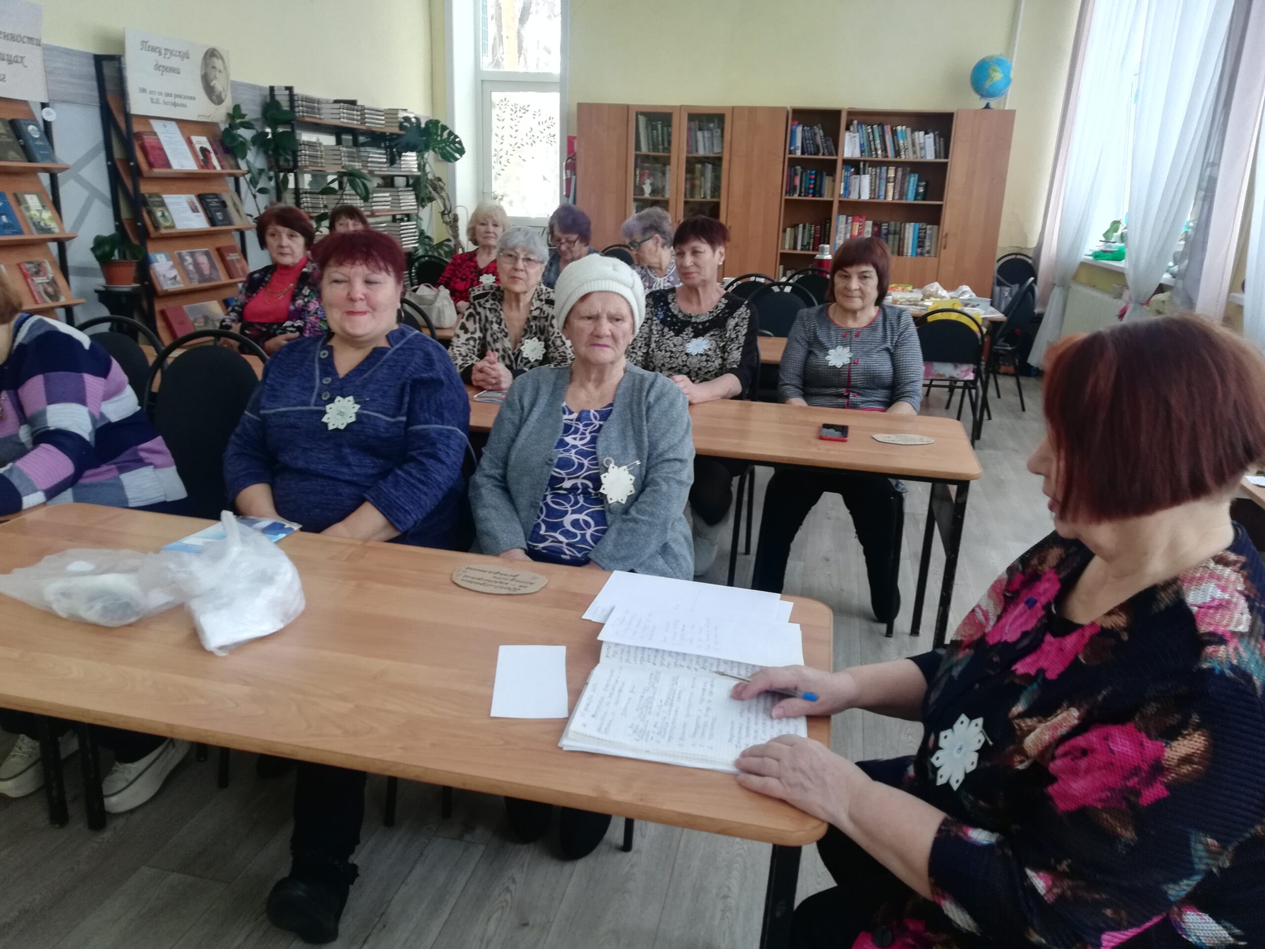 С наступающим Новым годом поздравили и вручили сувениры членам клуба председатель местного отделения «Союз пенсионеров России» А.В.Шилова и председатель Совета ветеранов Е.И.Кротких .