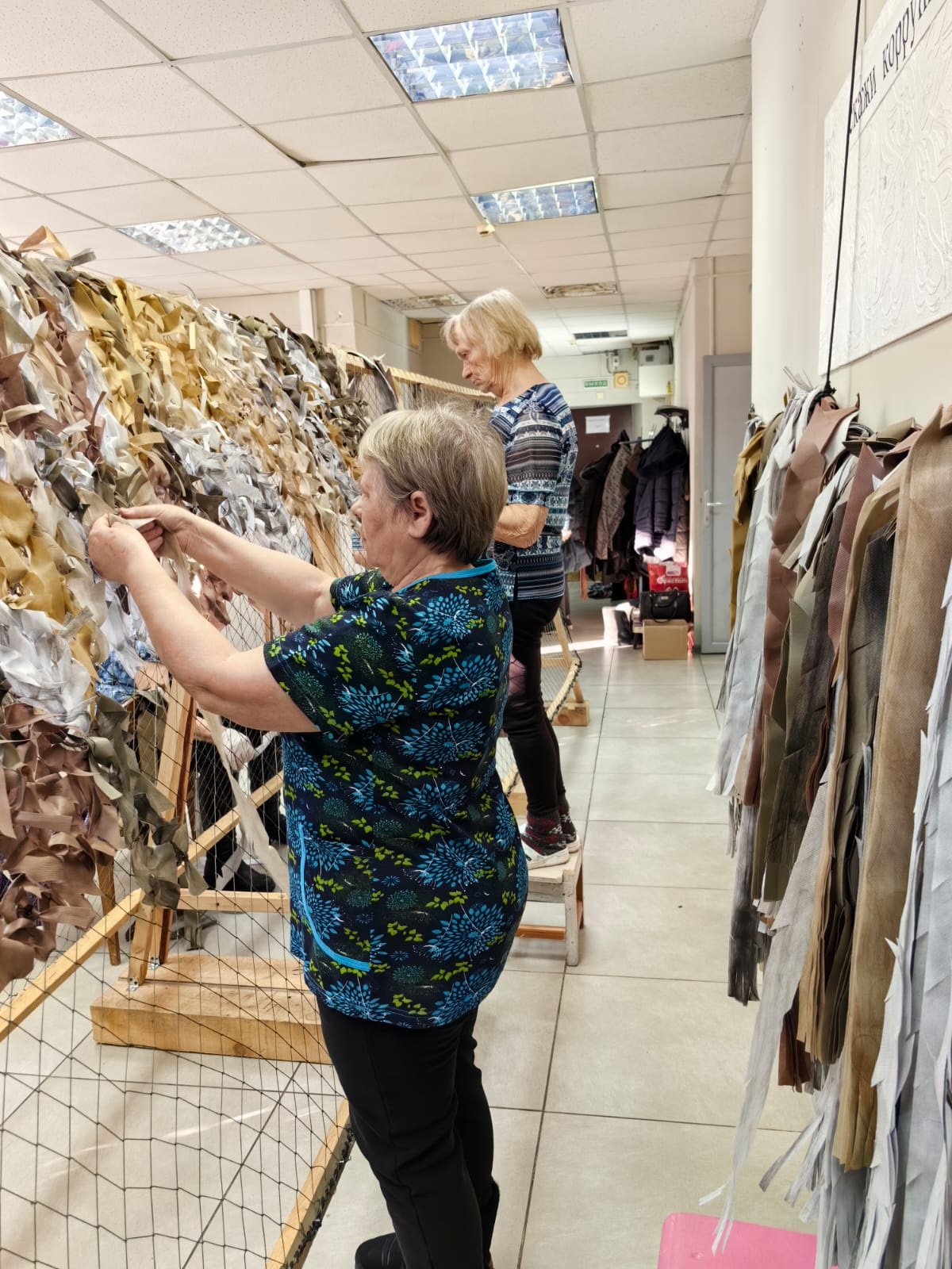 Также в плетении сетей нам помогают учащиеся Амурского казачьего колледжа и константиновской школы. Плетение маскировочных сетей в школе стало отличной возможностью для учеников внести свой посильный вклад в общую победу. Кроме того, это воспитывает патриотизм и чувство ответственности за судьбу своей страны. Школьники овладели специальной техникой плетения. Они научились вырезать полоски из ткани и вплетать их по определённым схемам в сеть. Работа несложная, но трудоёмкая, требующая усидчивости, внимания и терпения.