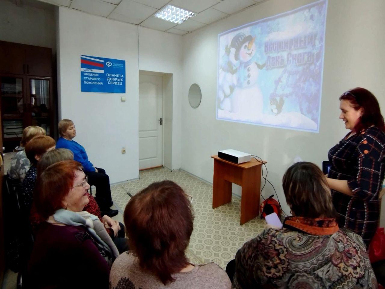 23 января участники центра общения старшего поколения «Планета добрых сердец» встретились на мероприятии «Всемирный день снега», который под девизом: «Насладиться, ознакомиться и испытать» провела сотрудник окружного Дома культуры.