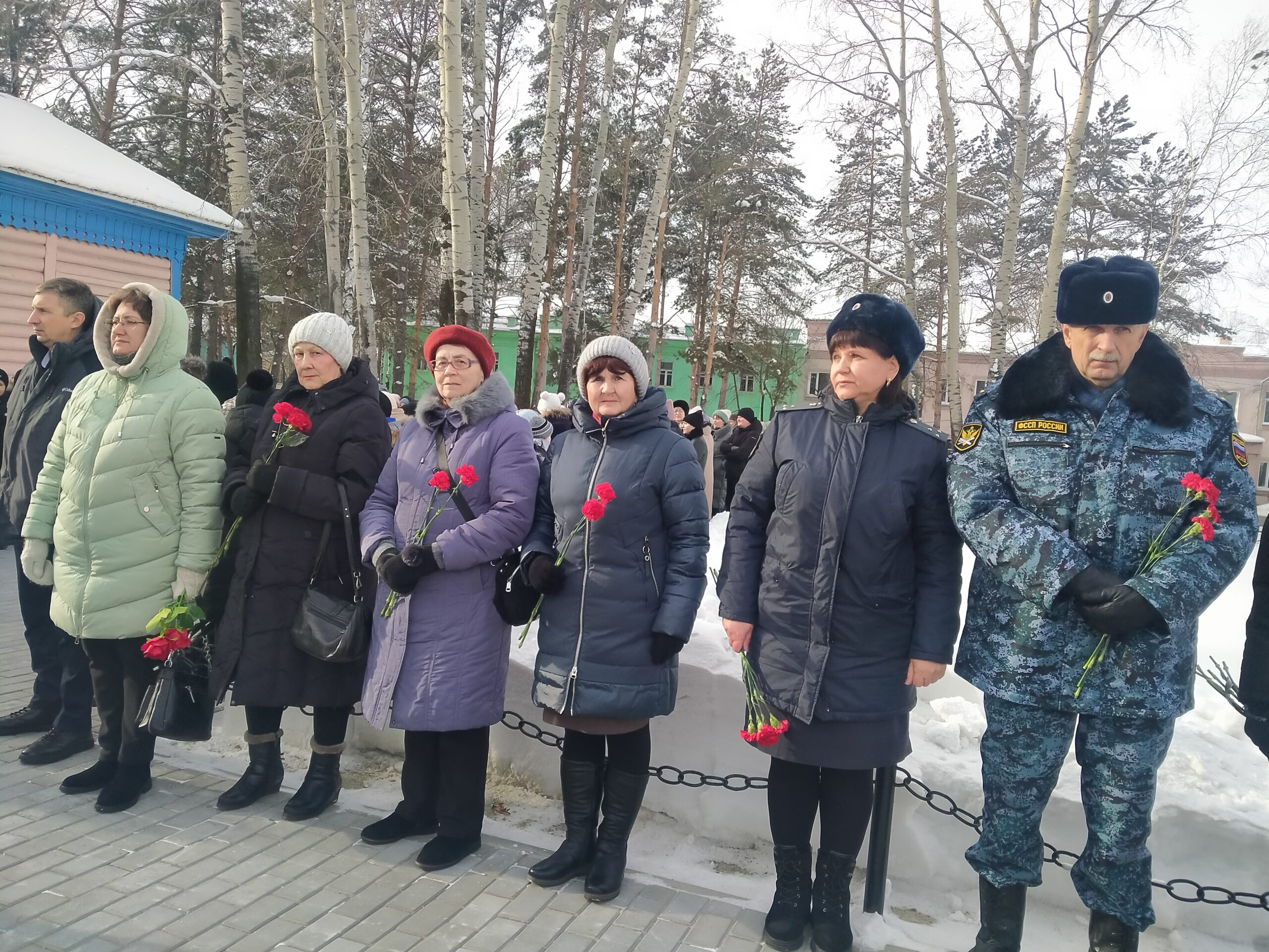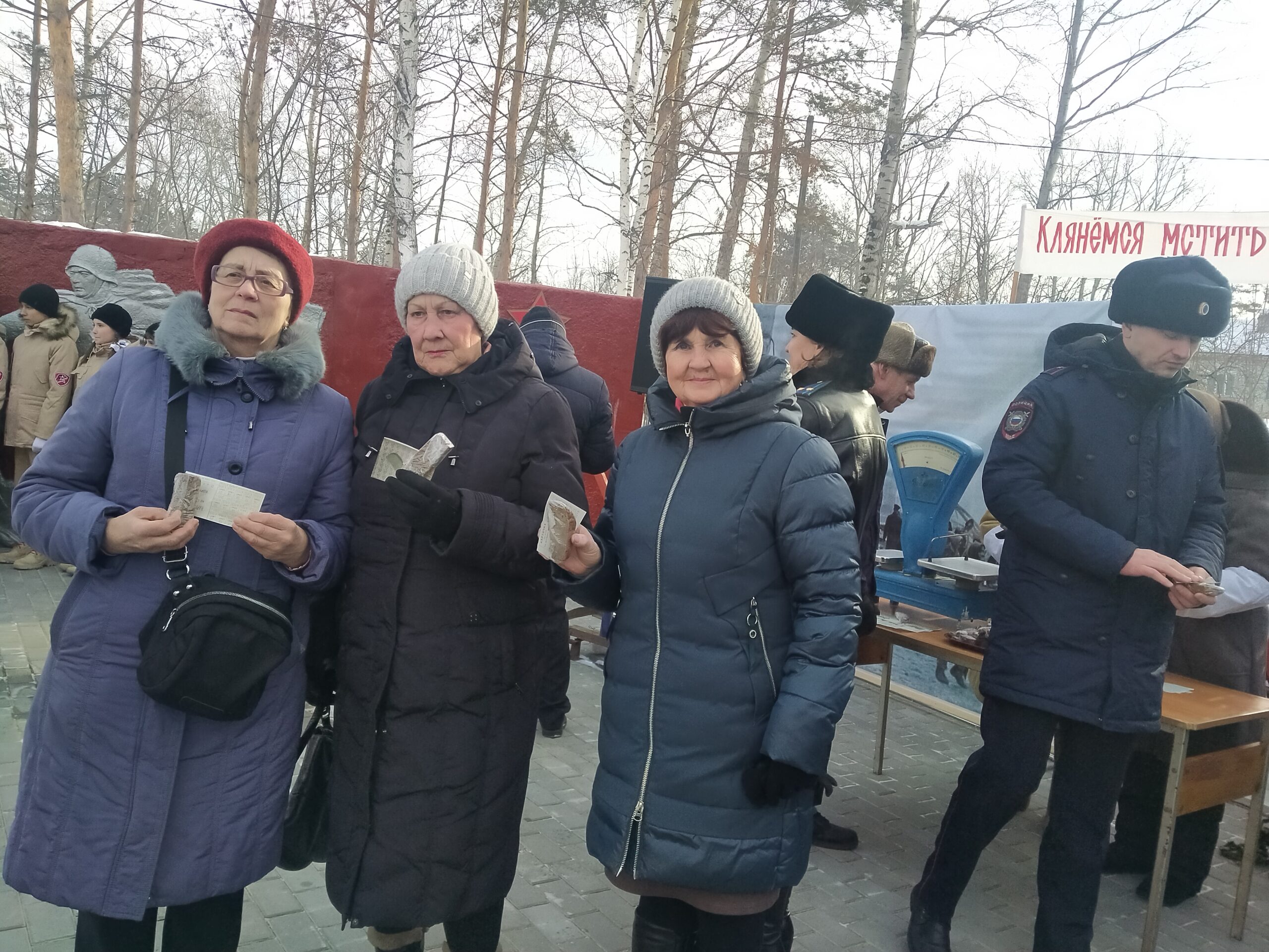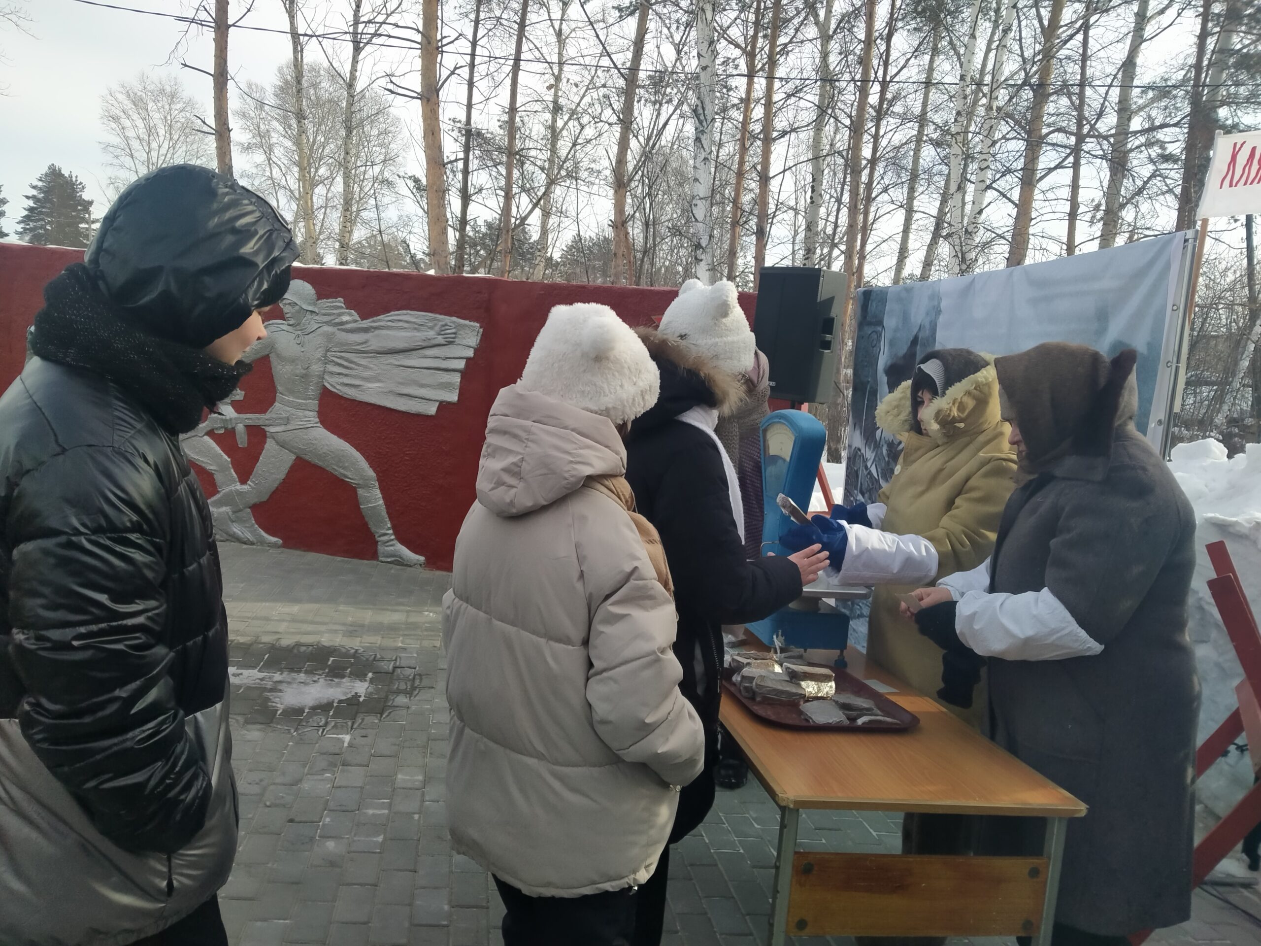 В этот студёный день пришедшие поклониться памяти ленинградцев возложили цветы к мемориалу. РДК — организатор акции «Мужество и стойкость Ленинграда» постарался воссоздать картины из жизни города тех военных лет: жители села имели возможность погреться у огня блокадного костра, а кто-то стоял в очереди за блокадной хлебной пайкой…