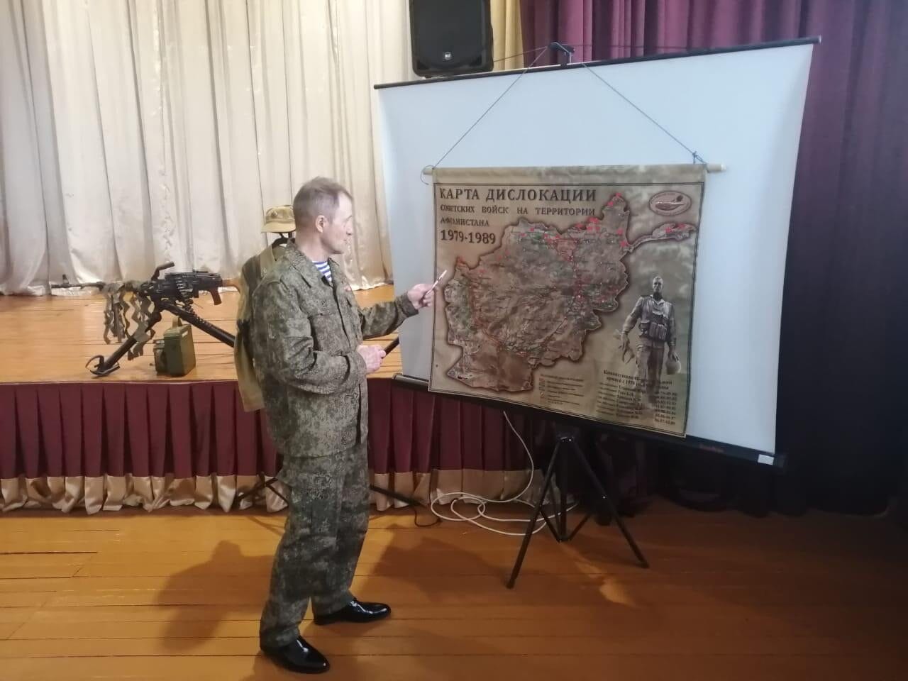 Урок мужества был посвящен памяти военнослужащих Советской Армии, исполнявших служебный долг за пределами Отечества, и годовщине вывода советских войск из Афганистана.