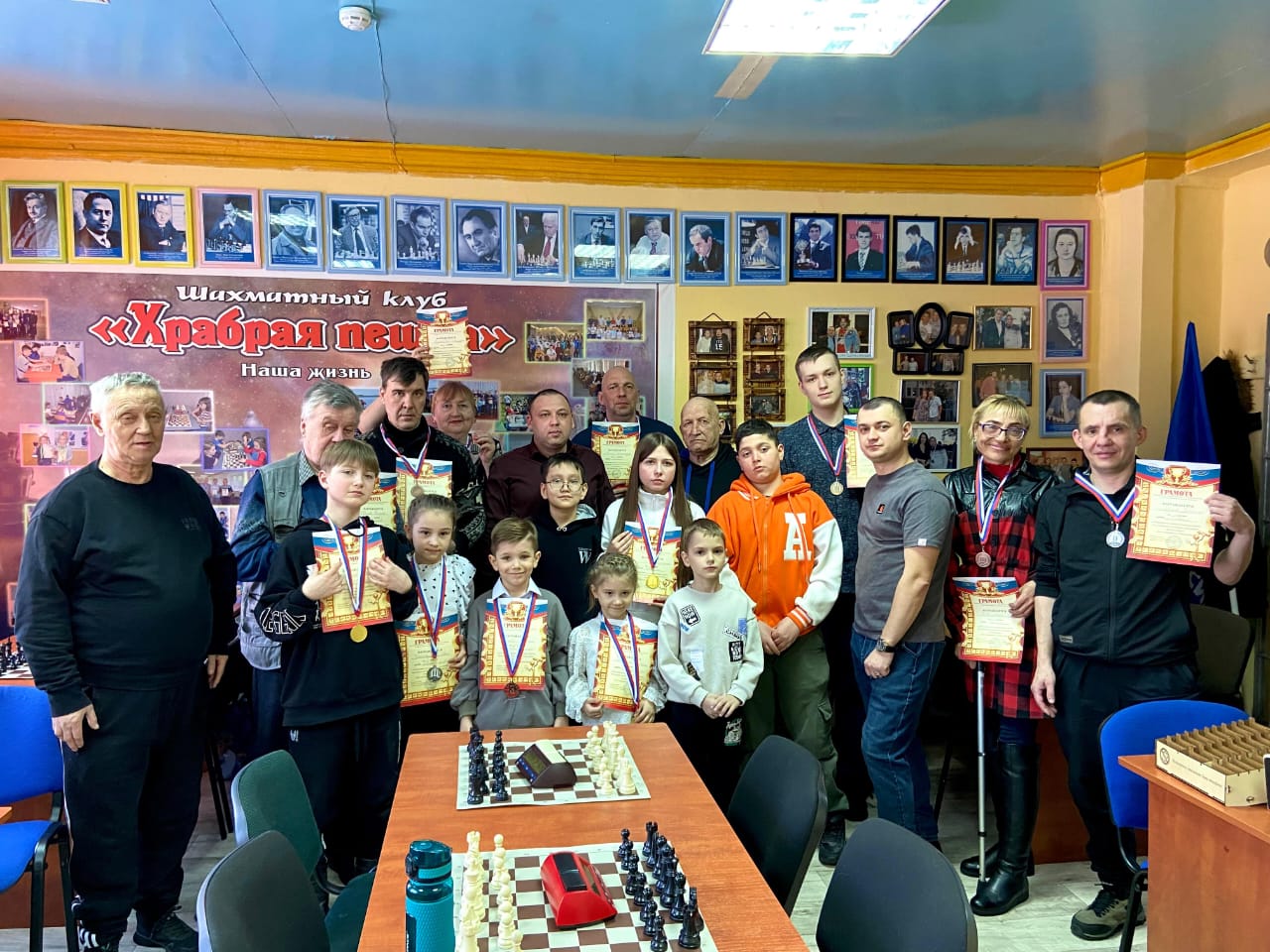 23.02.2025 в шахматном клубе «Храбрая пешка» города Белогорск состоялся Открытый личный турнир города Белогорск по быстрым шахматам, посвященный Дню защитника Отечества. Шахматисты Белогорской Городской Общественной Организации «Союз Пенсионеров»: Анатолий Борисович Филиппов, Тамара Викторовна Воробьёва, Анатолий Анатольевич Славков приняли участие в турнире. Тамара Воробьёва заняла 2 место. От души поздравляем Тамару Викторовну и желаем дальнейших побед.