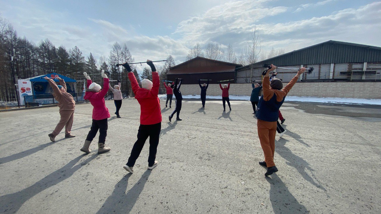 В Тынде в этот день в городском парке «Багульник» была проведена разминка для участниц клуба»Северные звезды»,в состав которого входят и члены союза пенсионеров.