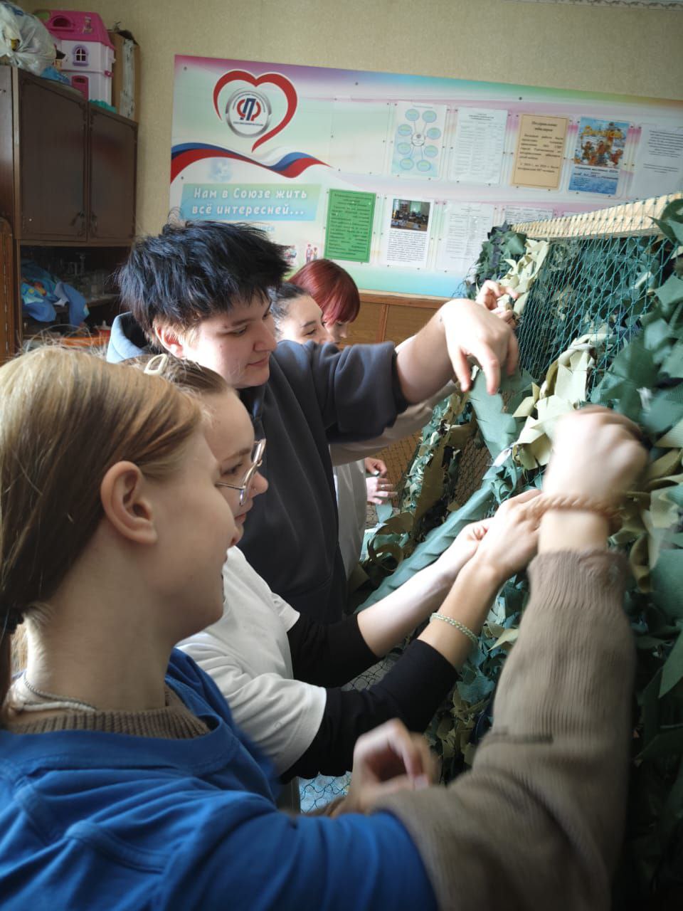 Продолжая помогать бойцам СВО, члены МО СПР города Райчиxинска плетут маскировочные сети, которые, как известно, играют огромную роль на фронте, помогают спасать жизни наших бойцов. У мастериц разная методика, но в итоге получаются камуфляжные покрытия, делающие невидимыми для вражеских дронов позиции , технику и наших бойцов. Только в этом году членами нашей организации было изготовлено и отправлено в зону боевых действий более 20 маскировочныx сетей, около 120 блиндажных свечей, 18 посылок с гуманитарной помощью.