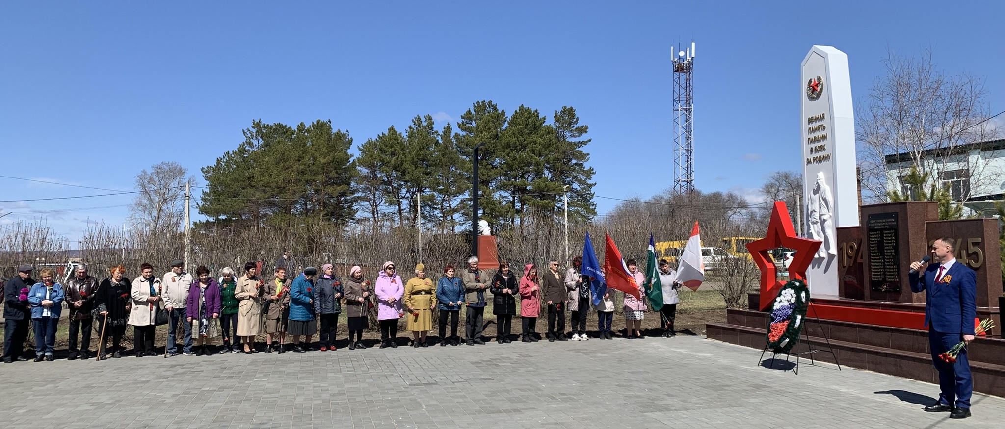 Школьники с родителями, дети войны, старшее поколение села пришли на открытие обновленного памятника жителям села Марково Благовещенского муниципального округа, погибшим в годы войны.