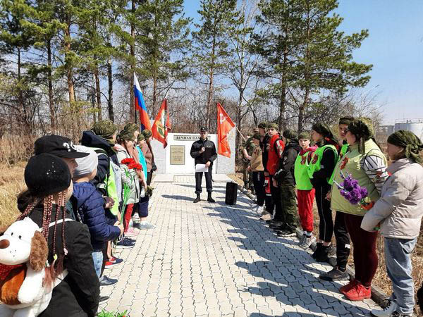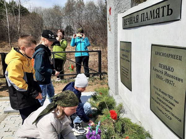 Затем они возложили цветы к памятнику воинам-поярковцам, погибшим в Гражданской и Великой Отечественной войнах, и направились к заставе, возле которой покоятся прах пограничника Александра Морозова и красноармейца Алексея Пенько, погибших при охране государственной границы от рук японских милитаристов.