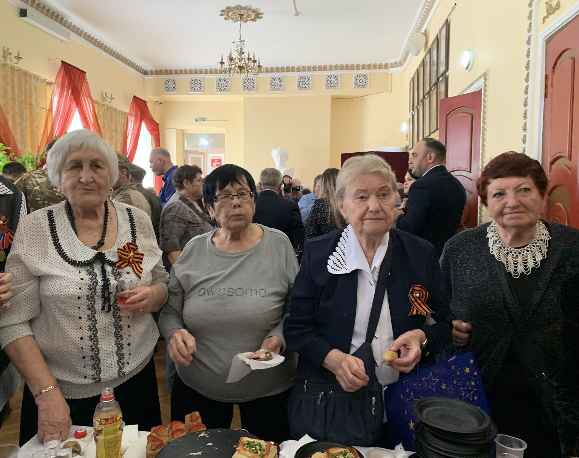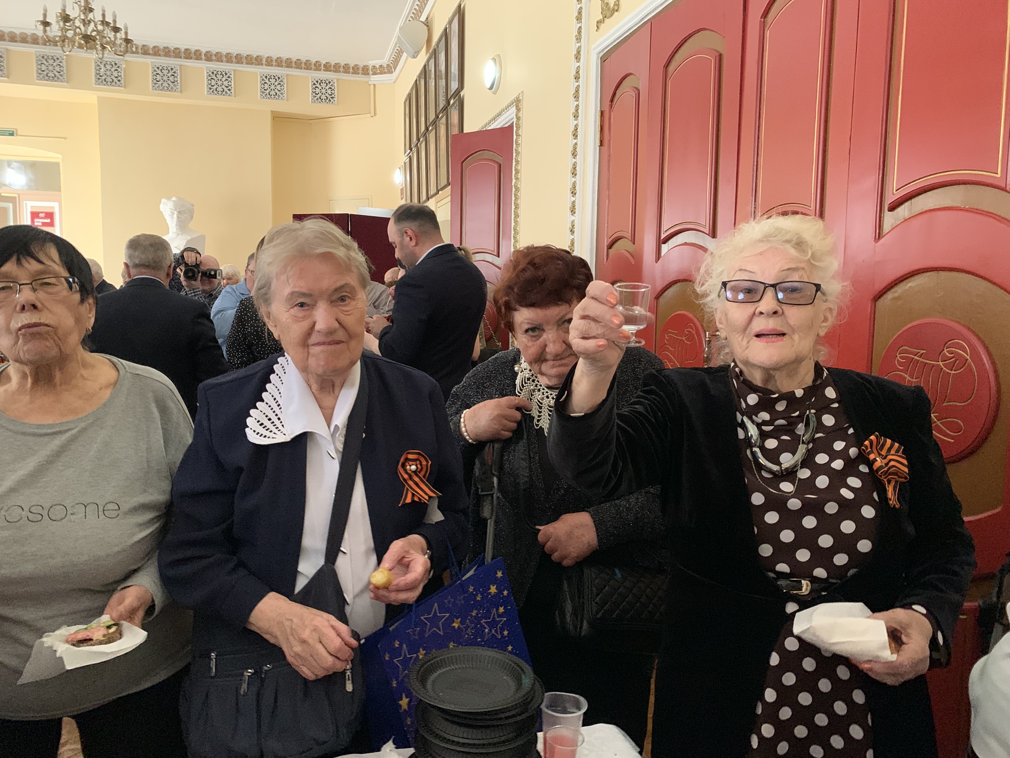 Традиционный фуршет, завершивший мероприятие в театре –это повод для старшего поколения встретиться, обменяться впечатлениями о своей жизни и о мероприятии, оставить на память совместные фотографии.