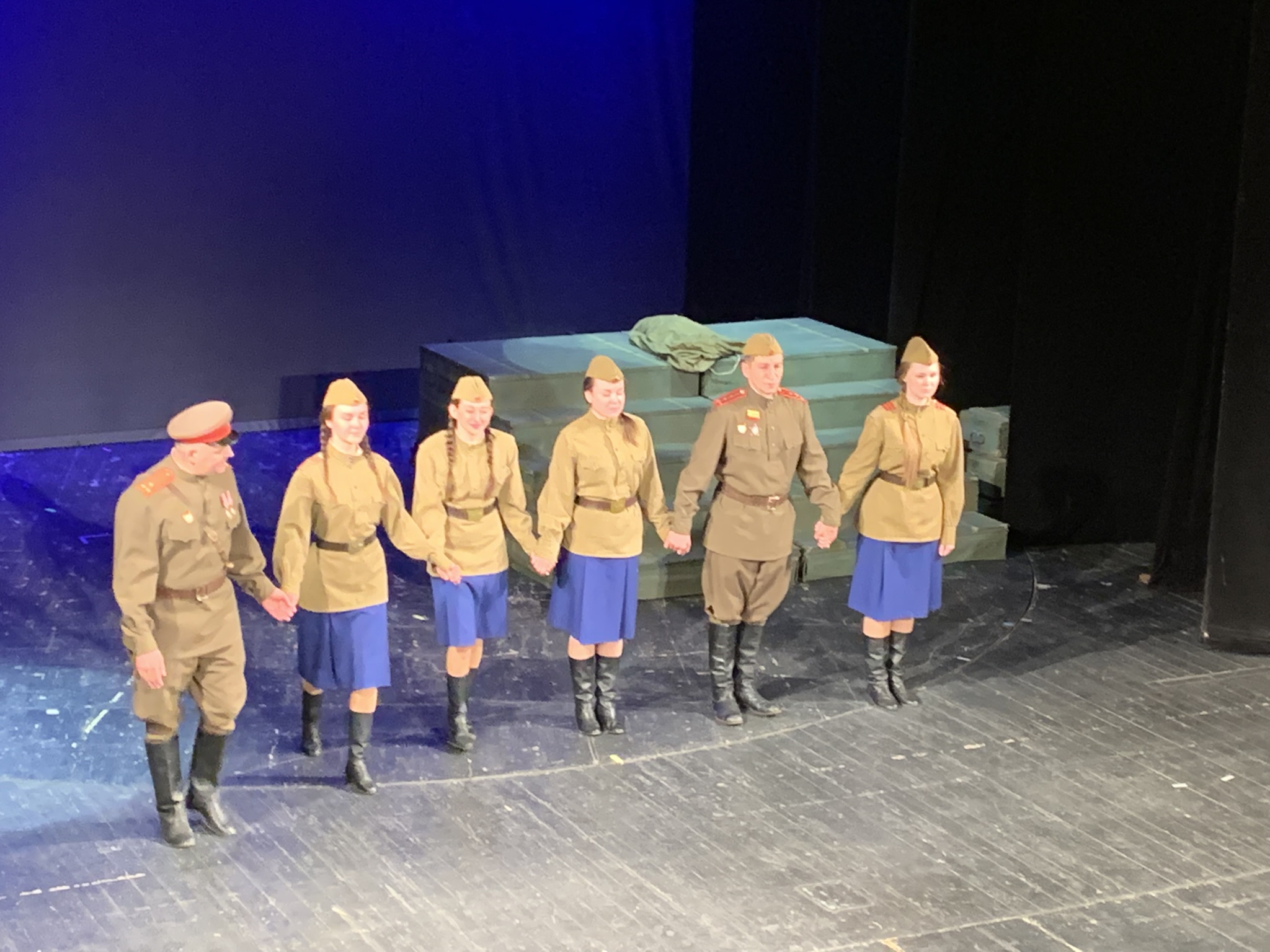 Артисты Амурского театра драмы подарили участникам торжественного собрания премьеру своего спектакля «Не покидай меня». Сюжет – о войне, о любви, о преданности долгу и о потерях на войне; одна история из тысяч, которые случились на войне. Как сказано в аннотации, спектакль про великую и далекую войну, которая вдруг становится близкой и понятной, непохожей на ту, что «проходят» по учебникам.