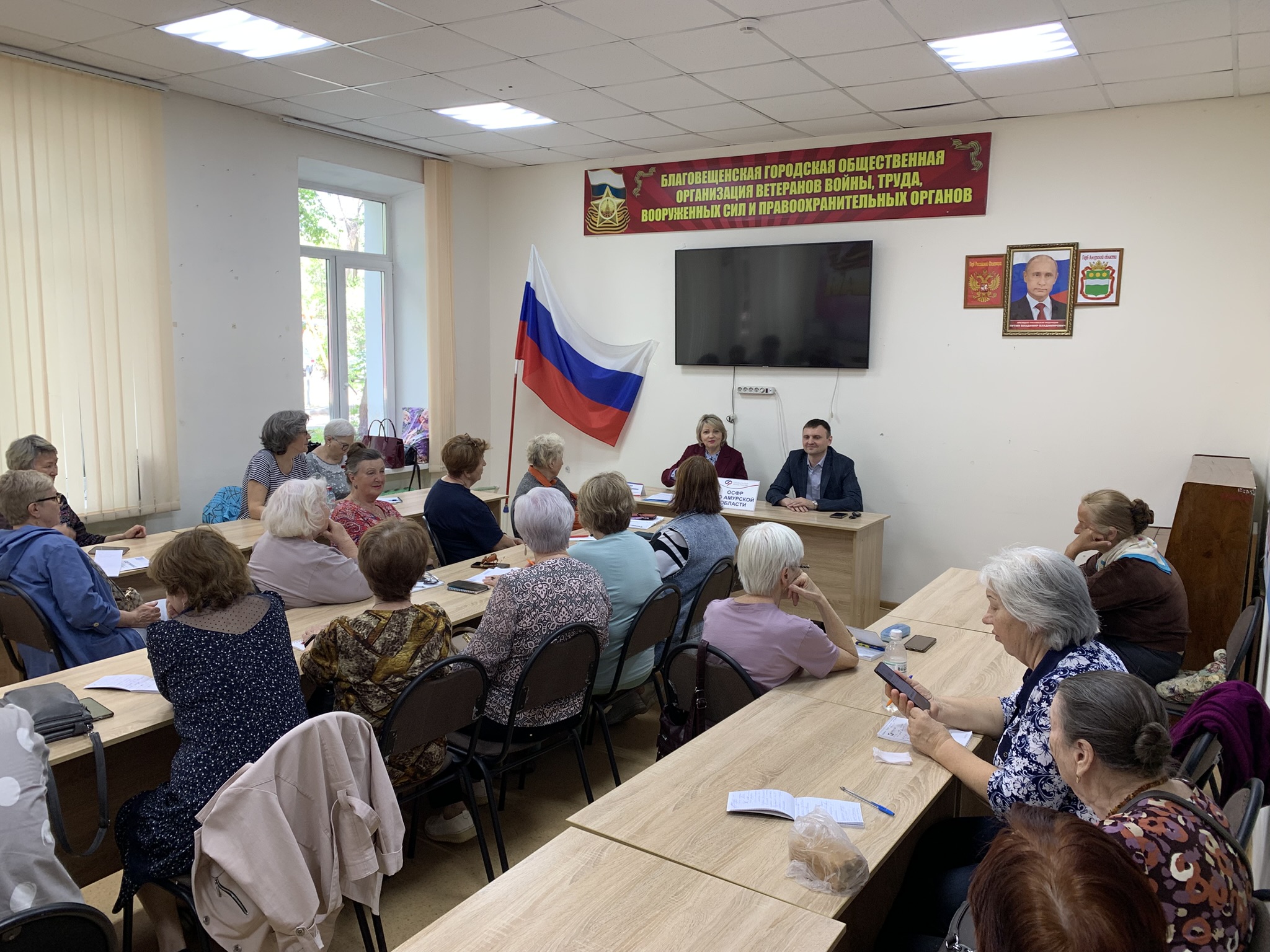 Очередное занятие клуба финансовой грамотности Благовещенского местного отделения союза пенсионеров провели Гончарова Е.В., управляющий отделение Социального фонда России в Амурской области, и Голдов В.А., начальник отдела УМВД России в Амурской области по борьбе с киберпреступлениями.