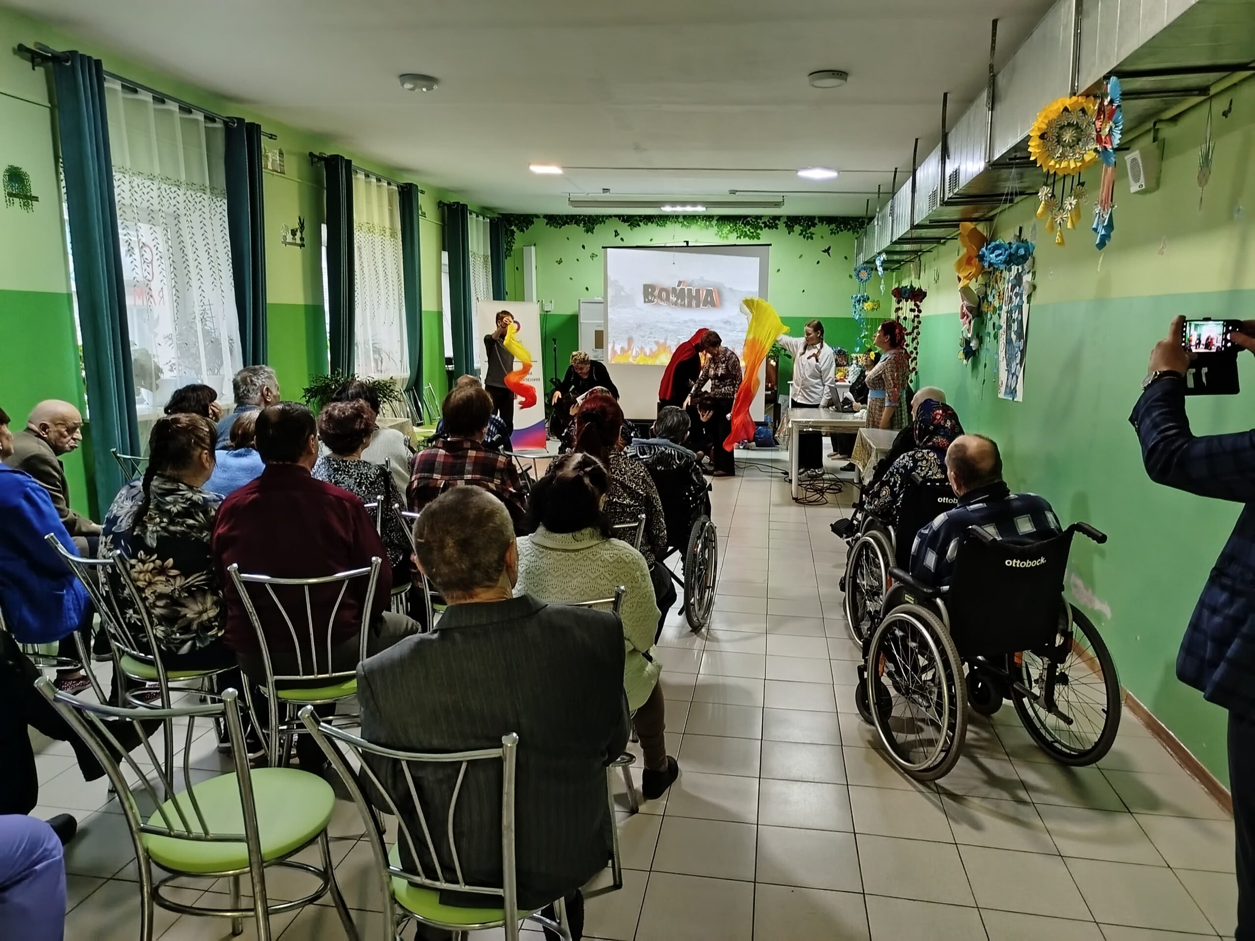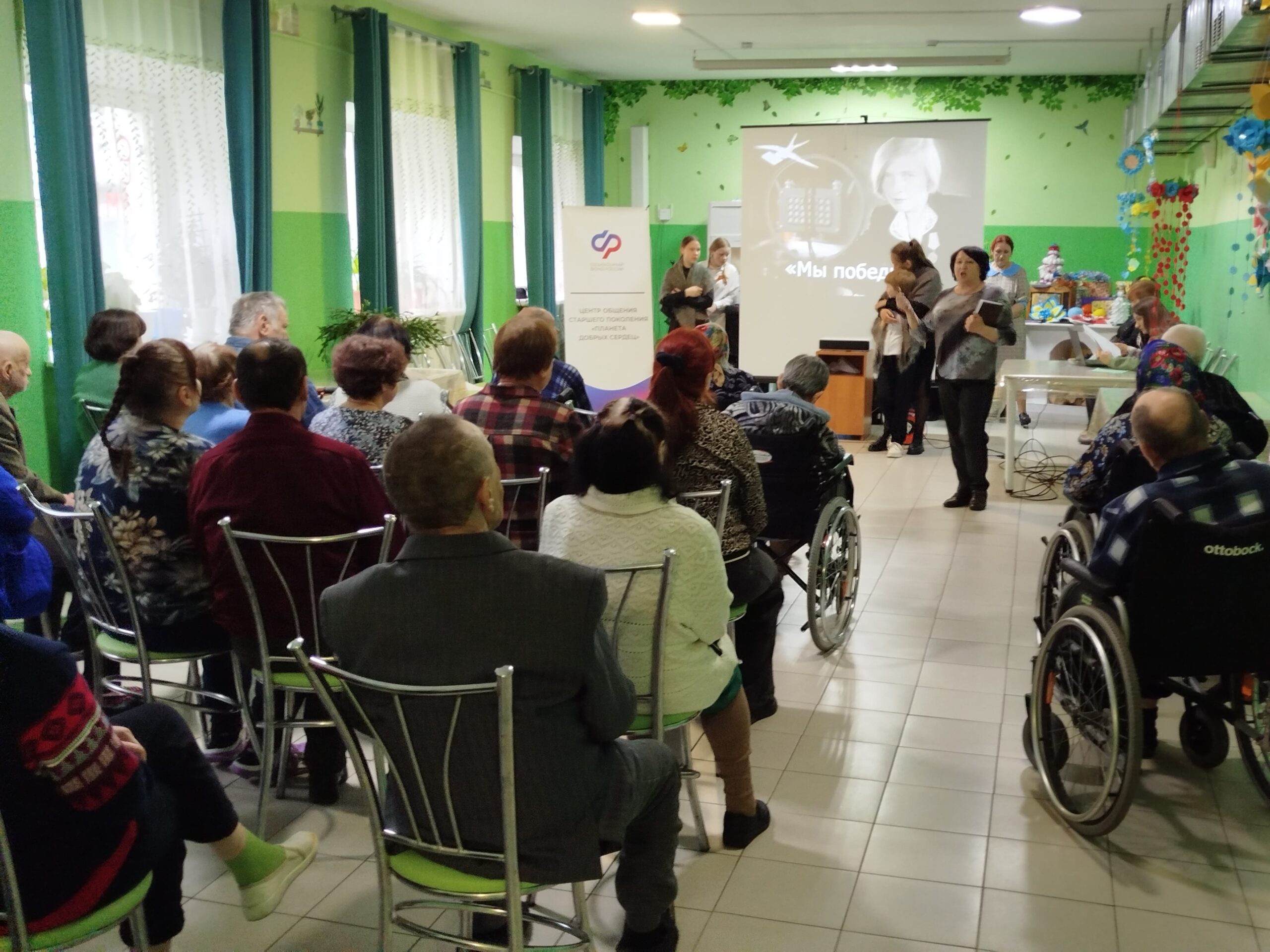 В завершении выступления зрители услышали стихи о войне в исполнении Константина Шевцова,Татьяны Паруликовой и члена СПР Татьяны Данько, а ещё зрители вместе с артистами исполнили несколько песен-караоке: «День Победы»,»Солнечный круг» и «Аист на крыше».